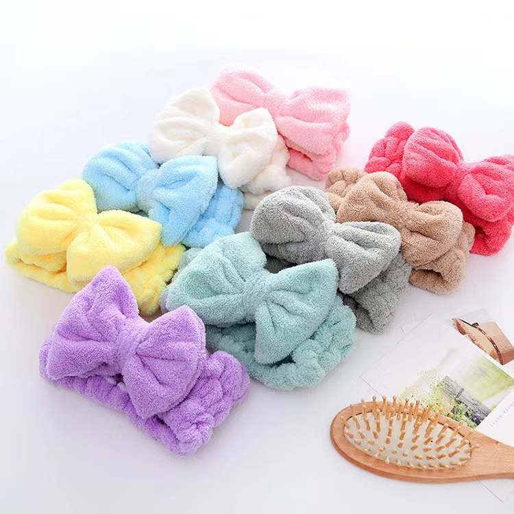 Özel Logo makyaj yumuşak peluş Hairband düz renk dokuma kozmetik havlu bandı ile özel baskı